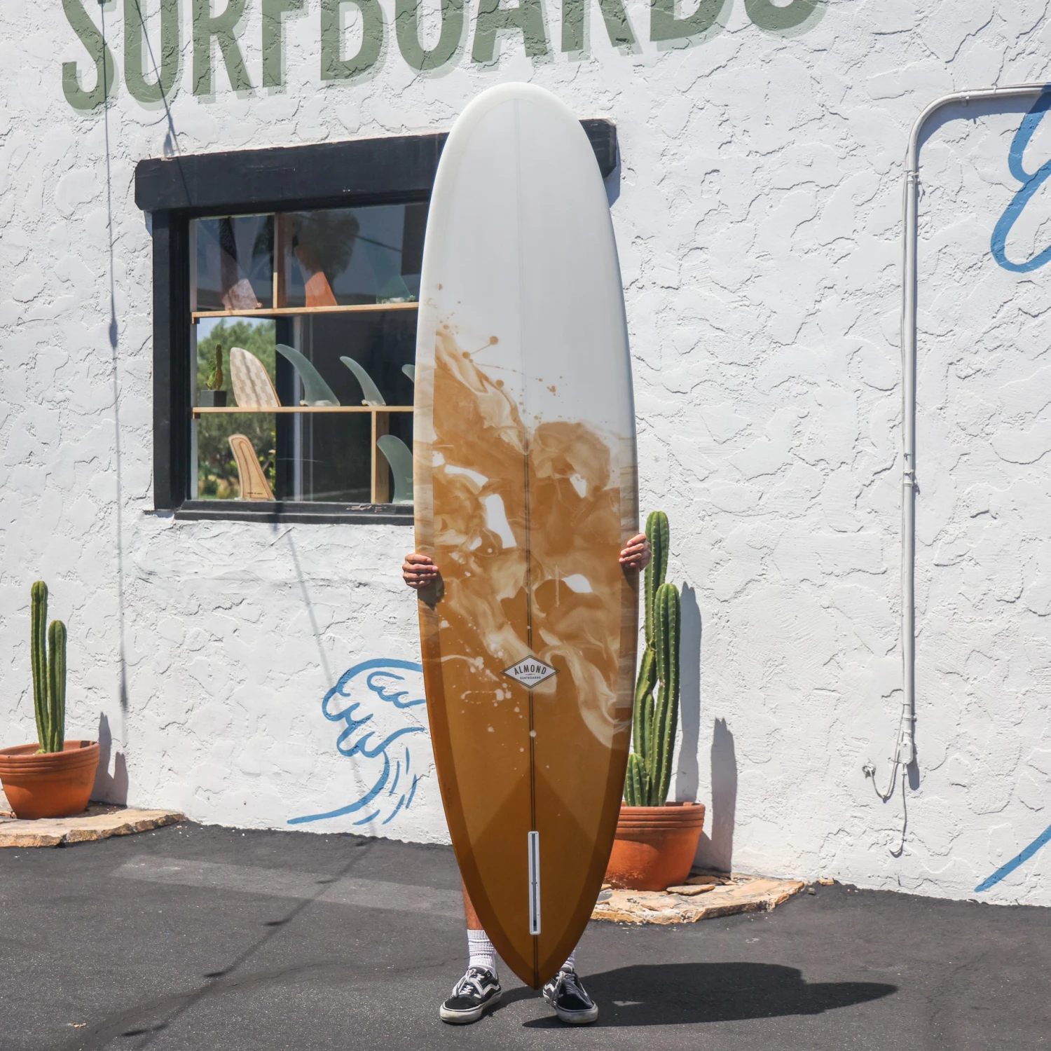 This is our most popular, and mort versatile model.  Low-rocker and substantial enough volume to get into waves early. Pintail and slight vee to help it turn with ease.