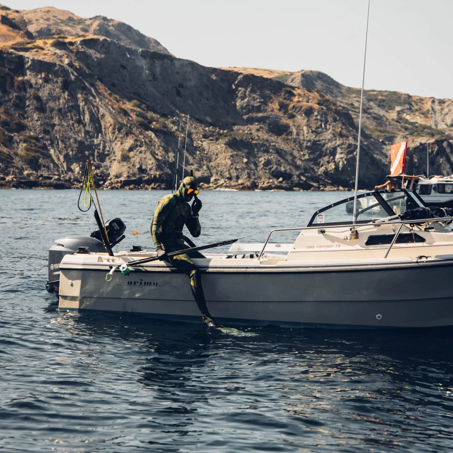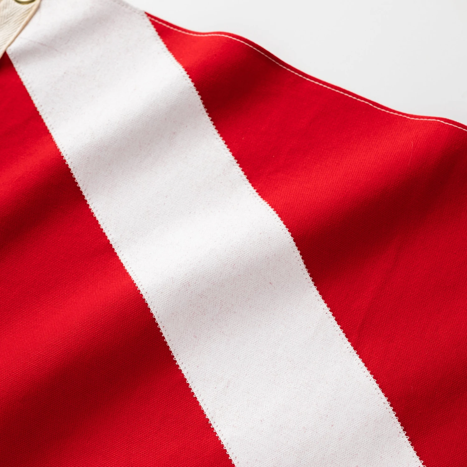 Diver down. This hand-made flag is made of washed red canvas, with screen-printed white stripe. Zig-zag stitch detail along the borders of the stripe by Slightly Choppy.