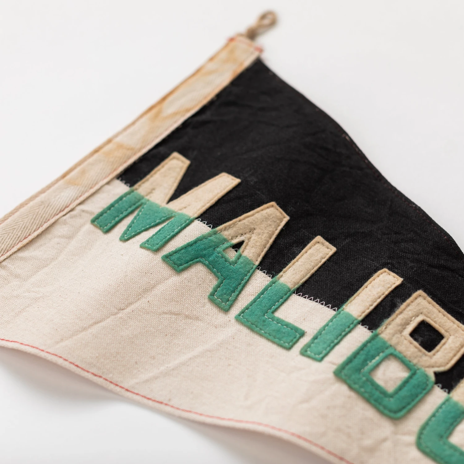Each flag is hand-painted, stitched and prepared to be hung with photo, art or object collections