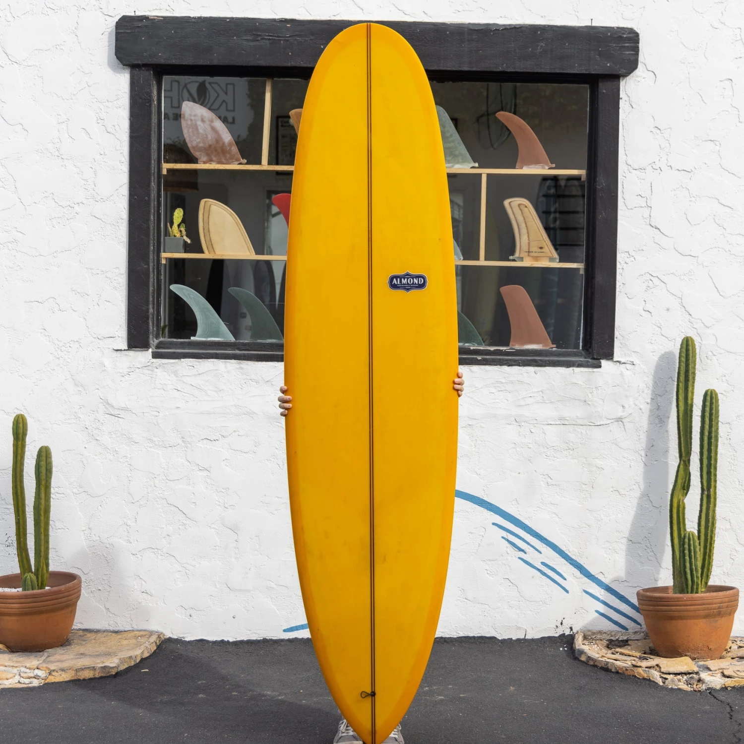 This is our most popular, and mort versatile model.  Low-rocker and substantial enough volume to get into waves early. Pintail and slight vee to help it turn with ease.